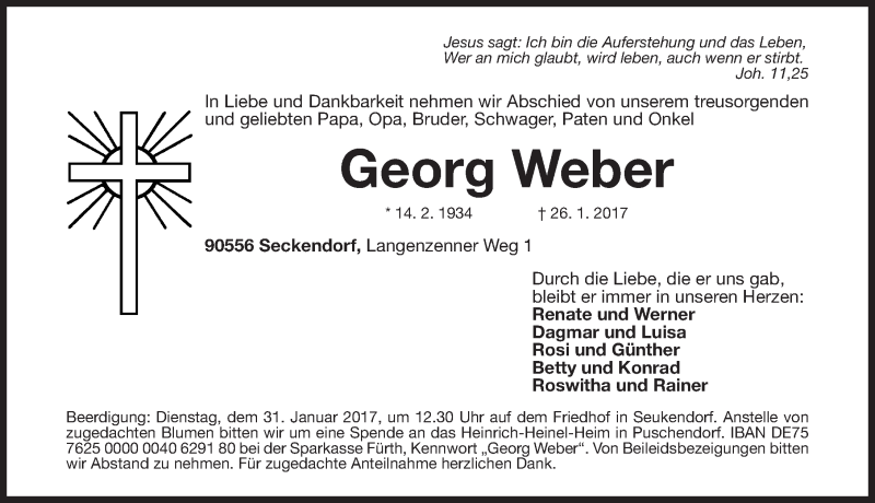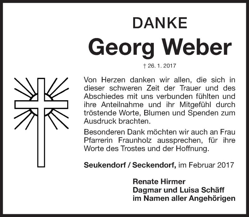 Hier finden Sie alle Traueranzeigen aus der Zeitung, die bisher für Georg Weber erschienen sind. Weitere Traueranzeigen, die in der Zeitung erscheinen, werden hier ebenfalls aufgelistet