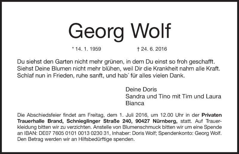 Hier finden Sie alle Traueranzeigen aus der Zeitung, die bisher für Georg Wolf erschienen sind. Weitere Traueranzeigen, die in der Zeitung erscheinen, werden hier ebenfalls aufgelistet