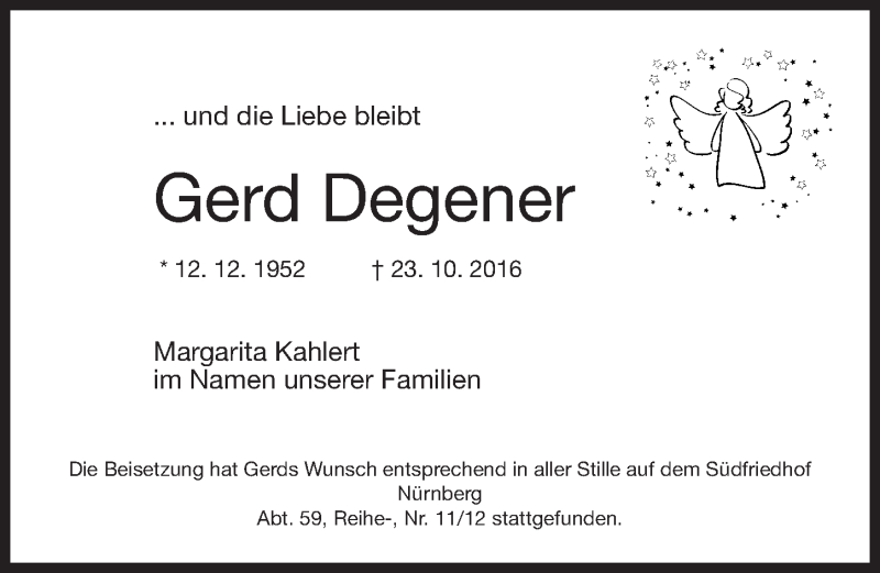 Hier finden Sie alle Traueranzeigen aus der Zeitung, die bisher für Gerd Degener erschienen sind. Weitere Traueranzeigen, die in der Zeitung erscheinen, werden hier ebenfalls aufgelistet