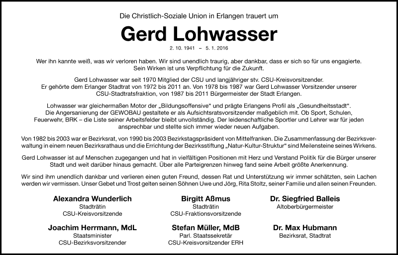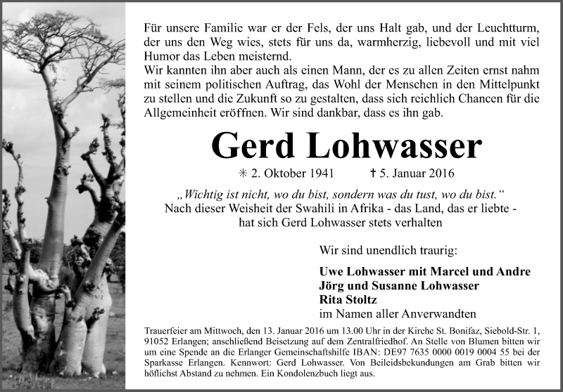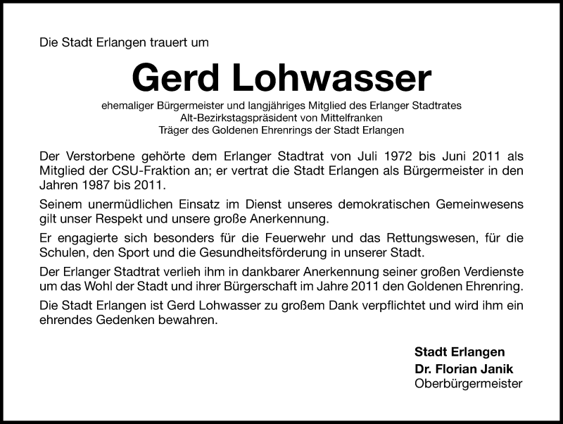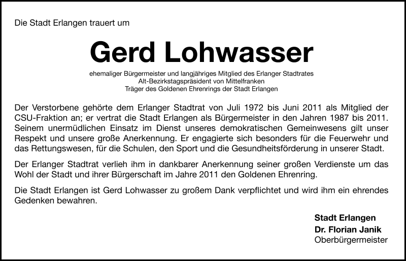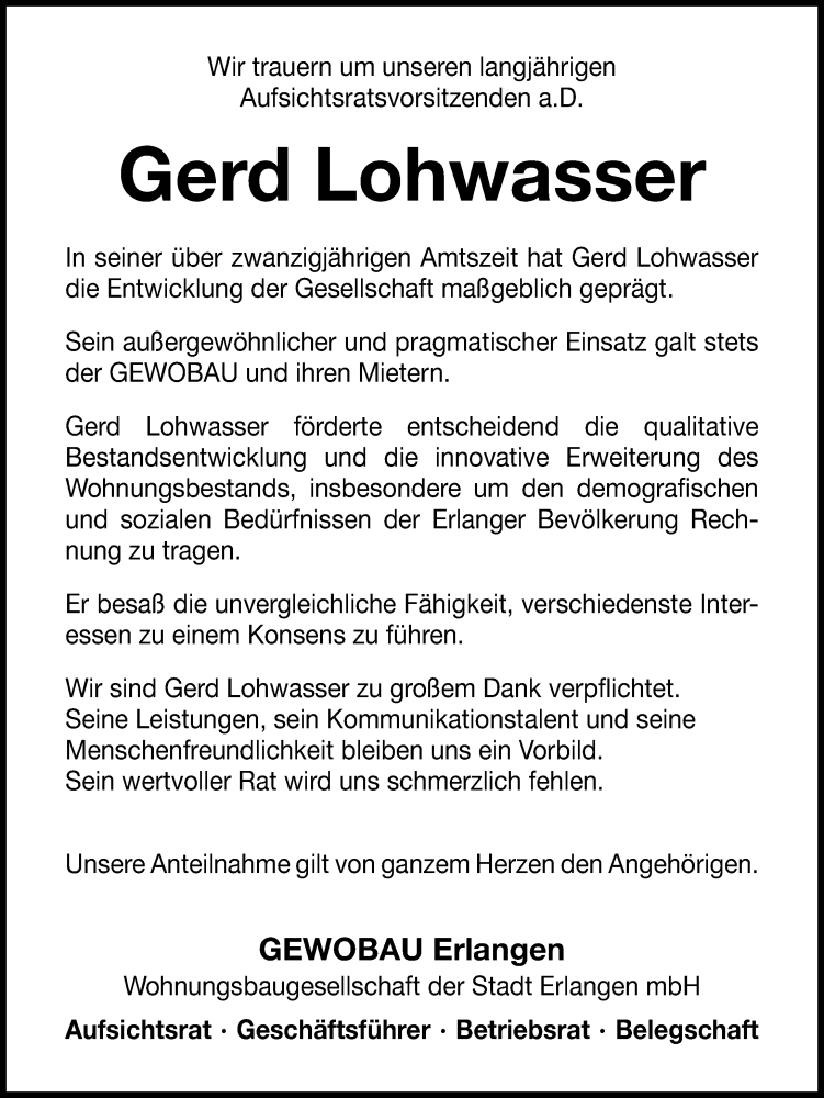 Hier finden Sie alle Traueranzeigen aus der Zeitung, die bisher für Gerd Lohwasser erschienen sind. Weitere Traueranzeigen, die in der Zeitung erscheinen, werden hier ebenfalls aufgelistet
