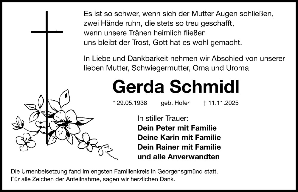 Hier finden Sie alle Traueranzeigen aus der Zeitung, die bisher für Gerda Schmidl erschienen sind. Weitere Traueranzeigen, die in der Zeitung erscheinen, werden hier ebenfalls aufgelistet