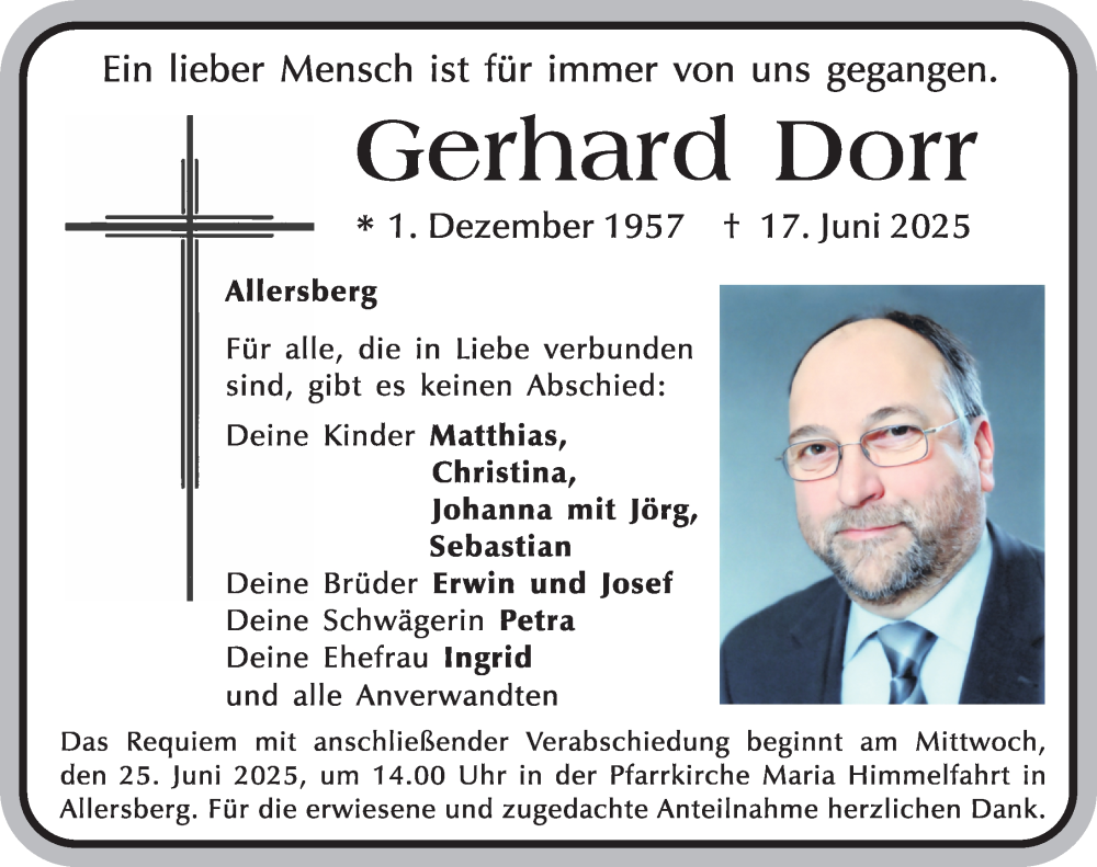 Hier finden Sie alle Traueranzeigen aus der Zeitung, die bisher für Gerhard Dorr erschienen sind. Weitere Traueranzeigen, die in der Zeitung erscheinen, werden hier ebenfalls aufgelistet