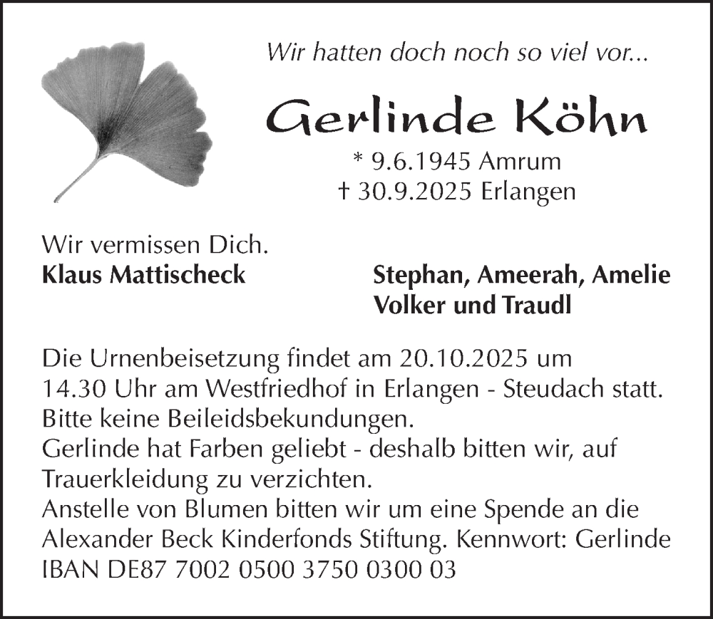 Hier finden Sie alle Traueranzeigen aus der Zeitung, die bisher für Gerlinde Köhn erschienen sind. Weitere Traueranzeigen, die in der Zeitung erscheinen, werden hier ebenfalls aufgelistet