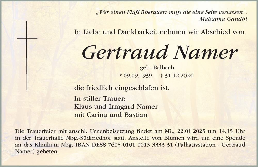 Hier finden Sie alle Traueranzeigen aus der Zeitung, die bisher für Gertraud Namer erschienen sind. Weitere Traueranzeigen, die in der Zeitung erscheinen, werden hier ebenfalls aufgelistet