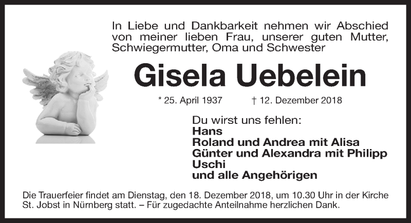 Hier finden Sie alle Traueranzeigen aus der Zeitung, die bisher für Gisela Uebelein erschienen sind. Weitere Traueranzeigen, die in der Zeitung erscheinen, werden hier ebenfalls aufgelistet