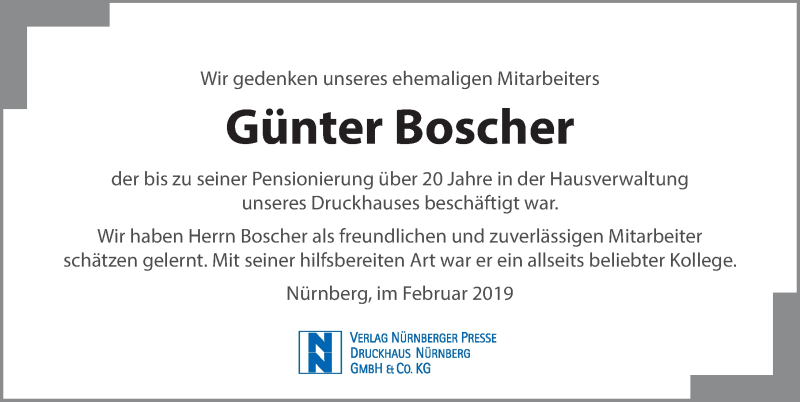 Hier finden Sie alle Traueranzeigen aus der Zeitung, die bisher für Günter Boscher erschienen sind. Weitere Traueranzeigen, die in der Zeitung erscheinen, werden hier ebenfalls aufgelistet