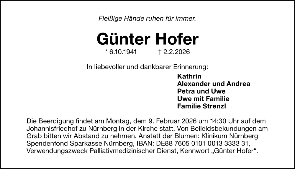 Hier finden Sie alle Traueranzeigen aus der Zeitung, die bisher für Günter Hofer erschienen sind. Weitere Traueranzeigen, die in der Zeitung erscheinen, werden hier ebenfalls aufgelistet