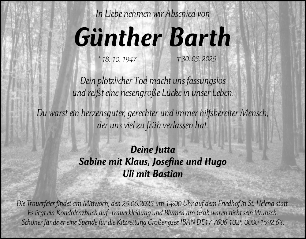 Hier finden Sie alle Traueranzeigen aus der Zeitung, die bisher für Günther Barth erschienen sind. Weitere Traueranzeigen, die in der Zeitung erscheinen, werden hier ebenfalls aufgelistet