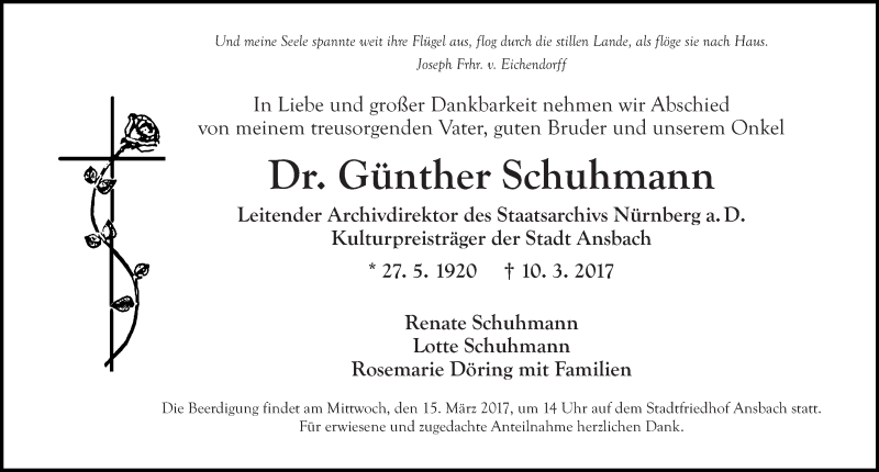 Hier finden Sie alle Traueranzeigen aus der Zeitung, die bisher für Günther Schuhmann erschienen sind. Weitere Traueranzeigen, die in der Zeitung erscheinen, werden hier ebenfalls aufgelistet