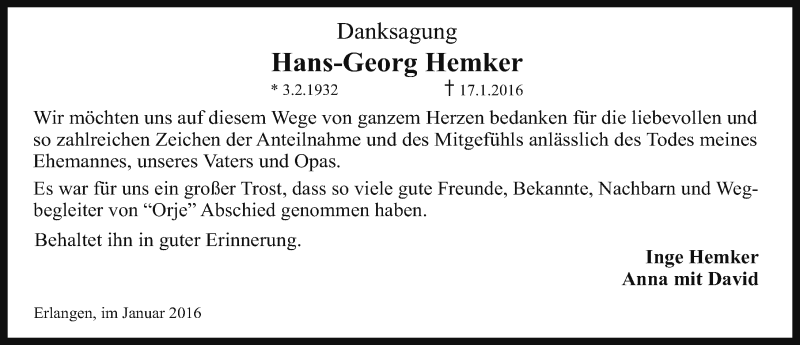 Hier finden Sie alle Traueranzeigen aus der Zeitung, die bisher für Hans-Georg Hemker erschienen sind. Weitere Traueranzeigen, die in der Zeitung erscheinen, werden hier ebenfalls aufgelistet