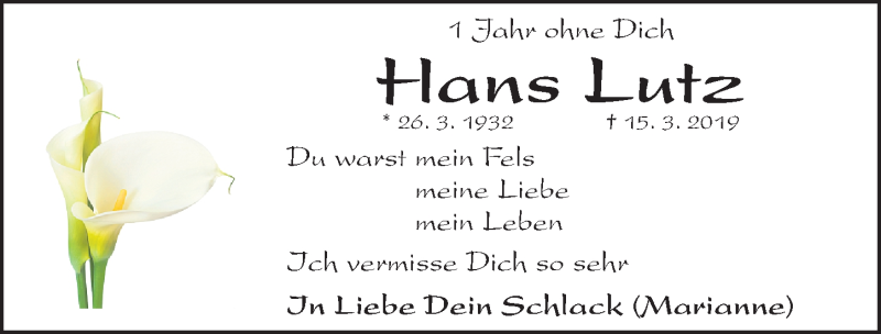 Hier finden Sie alle Traueranzeigen aus der Zeitung, die bisher für Hans Lutz erschienen sind. Weitere Traueranzeigen, die in der Zeitung erscheinen, werden hier ebenfalls aufgelistet