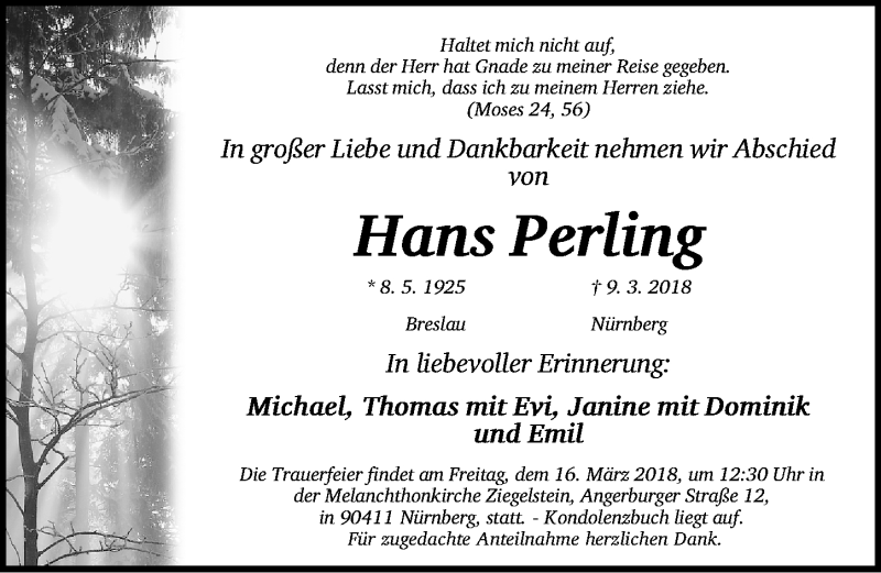 Hier finden Sie alle Traueranzeigen aus der Zeitung, die bisher für Hans Perling erschienen sind. Weitere Traueranzeigen, die in der Zeitung erscheinen, werden hier ebenfalls aufgelistet