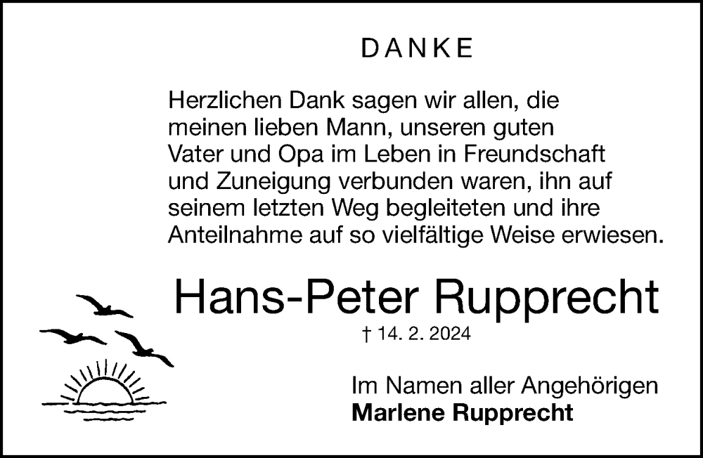 Hier finden Sie alle Traueranzeigen aus der Zeitung, die bisher für Hans-Peter Rupprecht erschienen sind. Weitere Traueranzeigen, die in der Zeitung erscheinen, werden hier ebenfalls aufgelistet