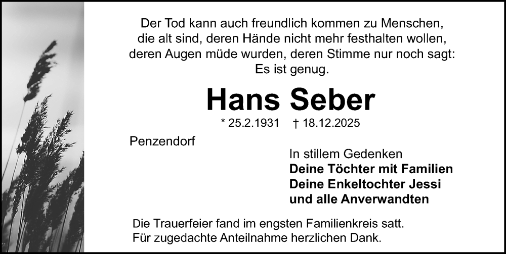 Hier finden Sie alle Traueranzeigen aus der Zeitung, die bisher für Hans Seber erschienen sind. Weitere Traueranzeigen, die in der Zeitung erscheinen, werden hier ebenfalls aufgelistet