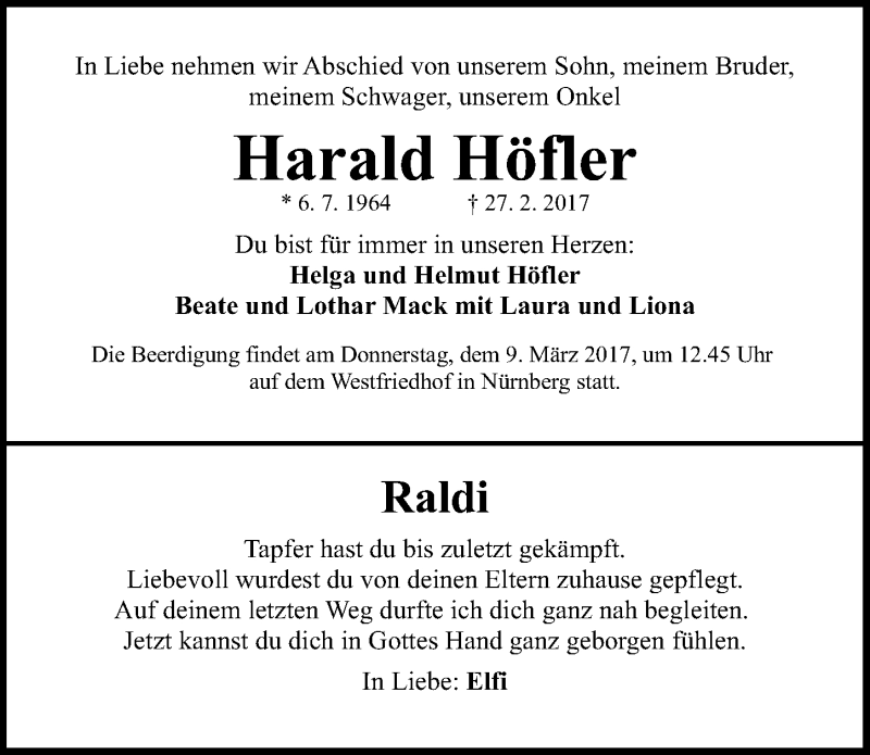 Hier finden Sie alle Traueranzeigen aus der Zeitung, die bisher für Harald Höfler erschienen sind. Weitere Traueranzeigen, die in der Zeitung erscheinen, werden hier ebenfalls aufgelistet