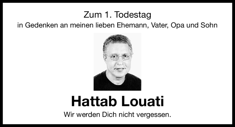 Hier finden Sie alle Traueranzeigen aus der Zeitung, die bisher für Hattab Louati erschienen sind. Weitere Traueranzeigen, die in der Zeitung erscheinen, werden hier ebenfalls aufgelistet