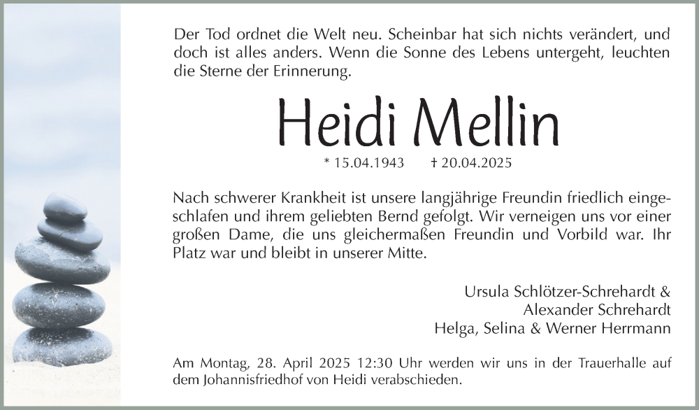 Hier finden Sie alle Traueranzeigen aus der Zeitung, die bisher für Heidi Mellin erschienen sind. Weitere Traueranzeigen, die in der Zeitung erscheinen, werden hier ebenfalls aufgelistet
