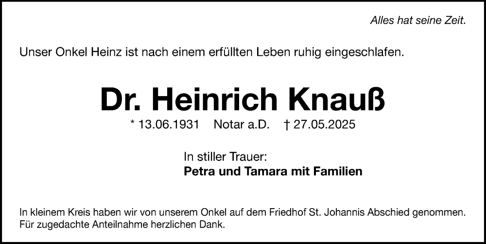 Hier finden Sie alle Traueranzeigen aus der Zeitung, die bisher für Heinrich Knauß erschienen sind. Weitere Traueranzeigen, die in der Zeitung erscheinen, werden hier ebenfalls aufgelistet