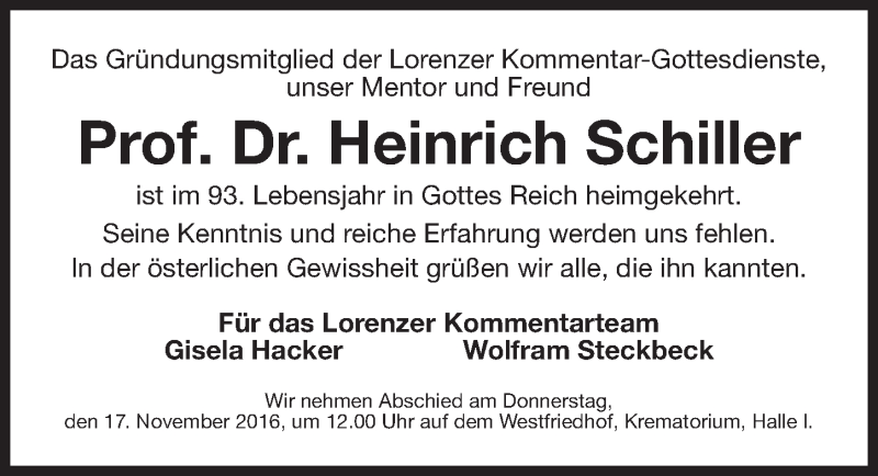 Hier finden Sie alle Traueranzeigen aus der Zeitung, die bisher für Heinrich Schiller erschienen sind. Weitere Traueranzeigen, die in der Zeitung erscheinen, werden hier ebenfalls aufgelistet