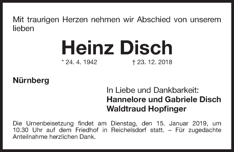 Hier finden Sie alle Traueranzeigen aus der Zeitung, die bisher für Heinz Disch erschienen sind. Weitere Traueranzeigen, die in der Zeitung erscheinen, werden hier ebenfalls aufgelistet