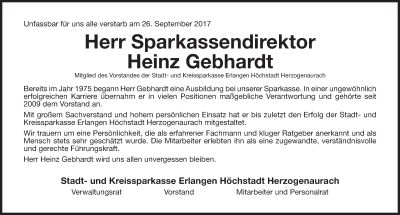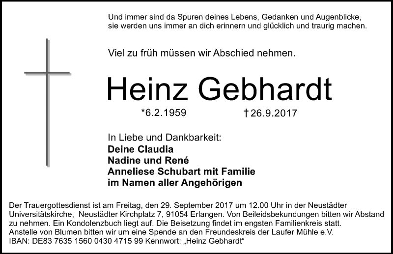 Hier finden Sie alle Traueranzeigen aus der Zeitung, die bisher für Heinz Gebhardt erschienen sind. Weitere Traueranzeigen, die in der Zeitung erscheinen, werden hier ebenfalls aufgelistet