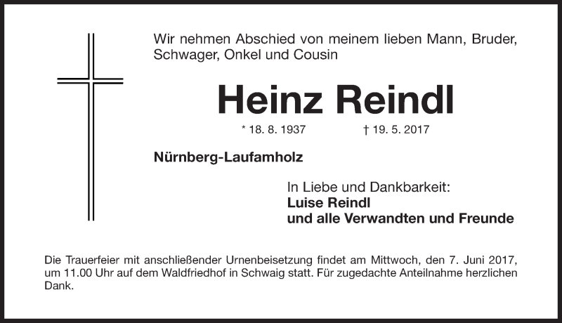 Hier finden Sie alle Traueranzeigen aus der Zeitung, die bisher für Heinz Reindl erschienen sind. Weitere Traueranzeigen, die in der Zeitung erscheinen, werden hier ebenfalls aufgelistet