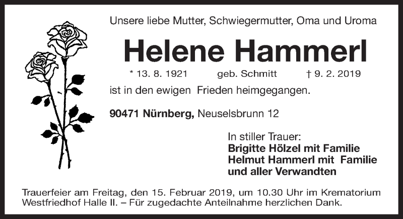 Hier finden Sie alle Traueranzeigen aus der Zeitung, die bisher für Helene Hammerl erschienen sind. Weitere Traueranzeigen, die in der Zeitung erscheinen, werden hier ebenfalls aufgelistet