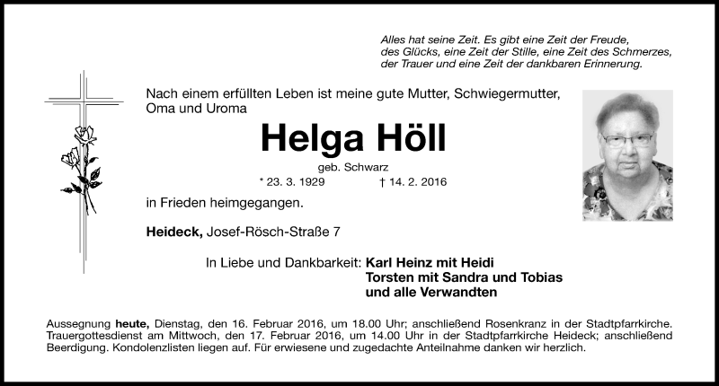 Hier finden Sie alle Traueranzeigen aus der Zeitung, die bisher für Helga Höll erschienen sind. Weitere Traueranzeigen, die in der Zeitung erscheinen, werden hier ebenfalls aufgelistet