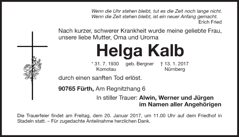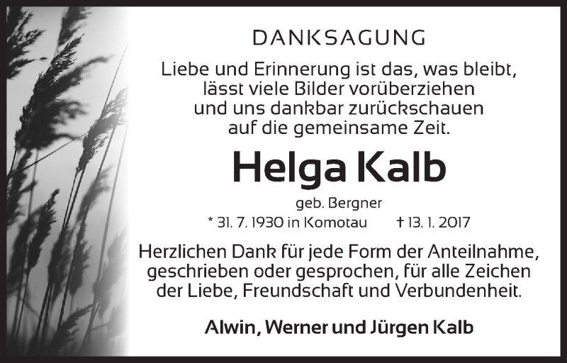 Hier finden Sie alle Traueranzeigen aus der Zeitung, die bisher für Helga Kalb erschienen sind. Weitere Traueranzeigen, die in der Zeitung erscheinen, werden hier ebenfalls aufgelistet