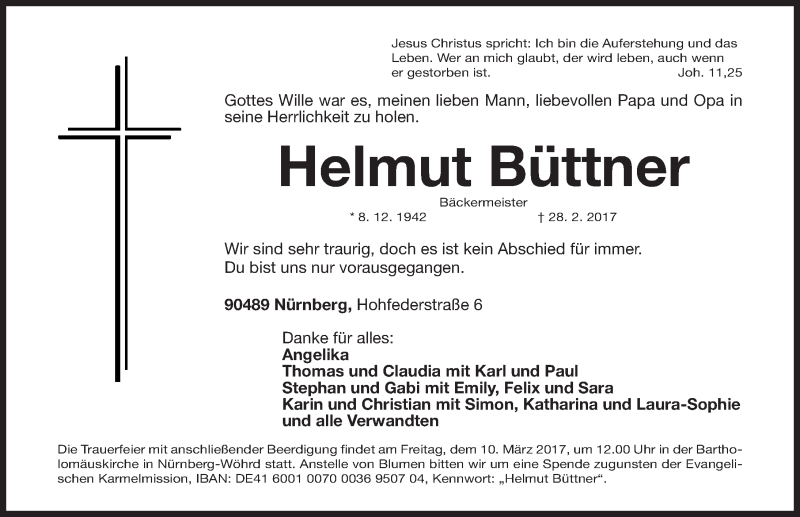 Hier finden Sie alle Traueranzeigen aus der Zeitung, die bisher für Helmut Büttner erschienen sind. Weitere Traueranzeigen, die in der Zeitung erscheinen, werden hier ebenfalls aufgelistet