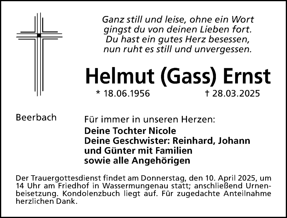 Hier finden Sie alle Traueranzeigen aus der Zeitung, die bisher für Helmut Ernst erschienen sind. Weitere Traueranzeigen, die in der Zeitung erscheinen, werden hier ebenfalls aufgelistet
