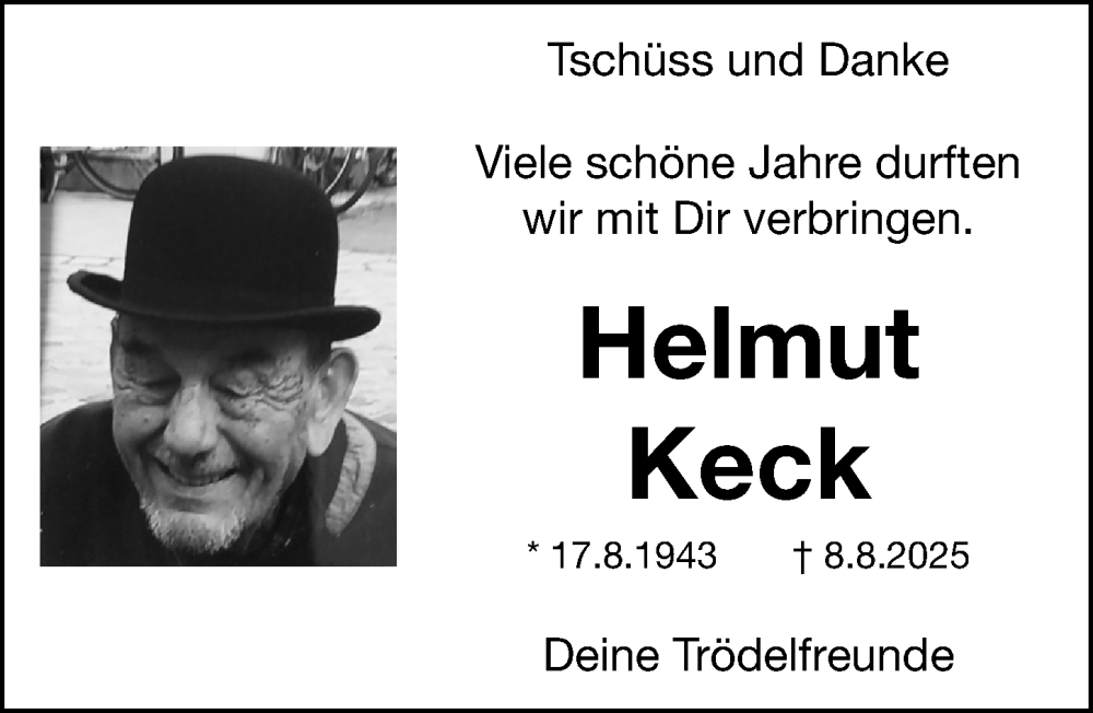 Hier finden Sie alle Traueranzeigen aus der Zeitung, die bisher für Helmut Keck erschienen sind. Weitere Traueranzeigen, die in der Zeitung erscheinen, werden hier ebenfalls aufgelistet