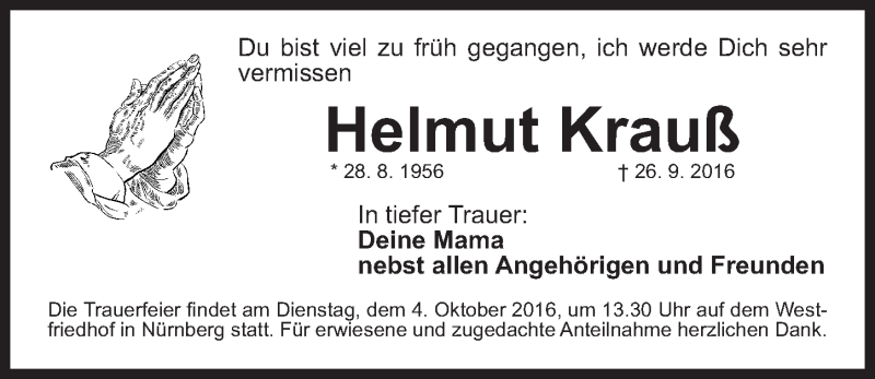 Hier finden Sie alle Traueranzeigen aus der Zeitung, die bisher für Helmut Krauß erschienen sind. Weitere Traueranzeigen, die in der Zeitung erscheinen, werden hier ebenfalls aufgelistet