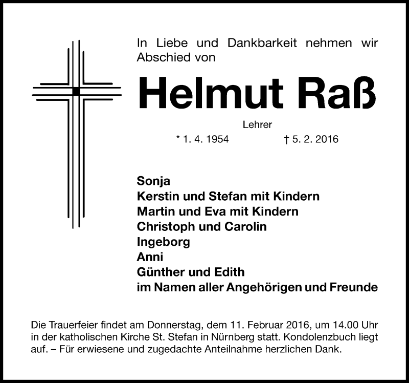 Hier finden Sie alle Traueranzeigen aus der Zeitung, die bisher für Helmut Raß erschienen sind. Weitere Traueranzeigen, die in der Zeitung erscheinen, werden hier ebenfalls aufgelistet