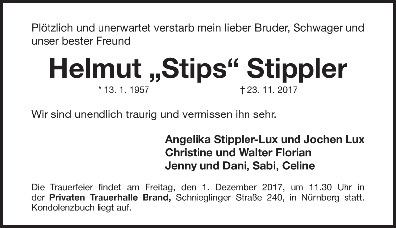 Hier finden Sie alle Traueranzeigen aus der Zeitung, die bisher für Helmut Stippler erschienen sind. Weitere Traueranzeigen, die in der Zeitung erscheinen, werden hier ebenfalls aufgelistet