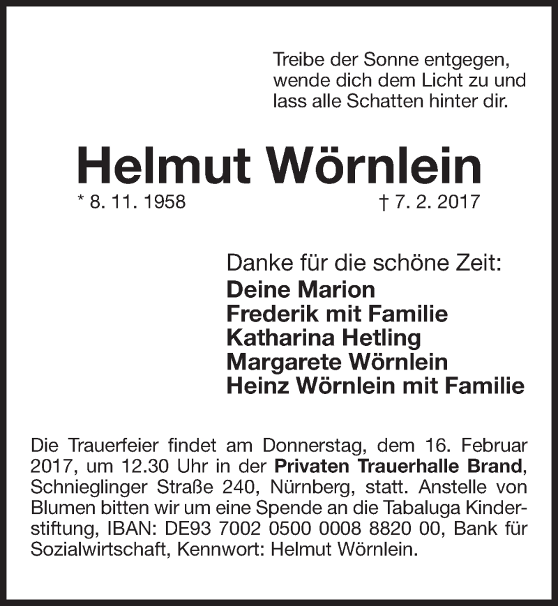Hier finden Sie alle Traueranzeigen aus der Zeitung, die bisher für Helmut Wörnlein erschienen sind. Weitere Traueranzeigen, die in der Zeitung erscheinen, werden hier ebenfalls aufgelistet