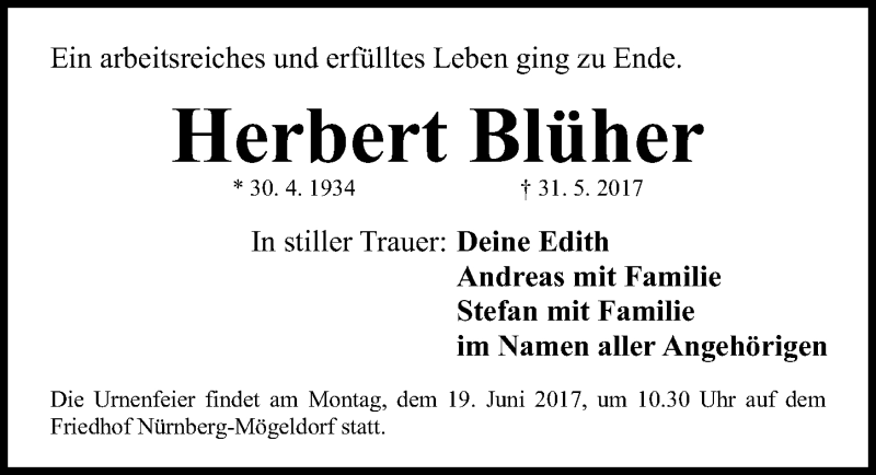 Hier finden Sie alle Traueranzeigen aus der Zeitung, die bisher für Herbert Blüher erschienen sind. Weitere Traueranzeigen, die in der Zeitung erscheinen, werden hier ebenfalls aufgelistet