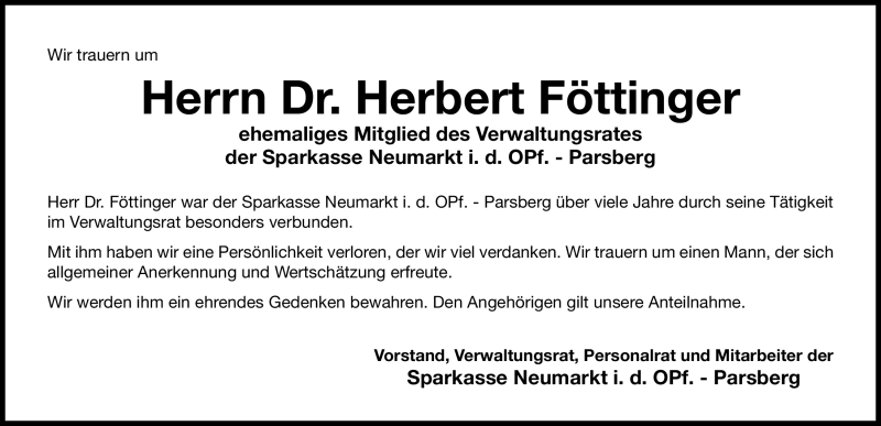 Hier finden Sie alle Traueranzeigen aus der Zeitung, die bisher für Herbert Föttinger erschienen sind. Weitere Traueranzeigen, die in der Zeitung erscheinen, werden hier ebenfalls aufgelistet
