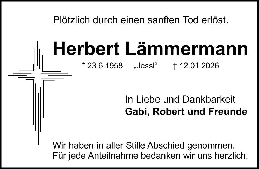 Hier finden Sie alle Traueranzeigen aus der Zeitung, die bisher für Herbert Lämmermann erschienen sind. Weitere Traueranzeigen, die in der Zeitung erscheinen, werden hier ebenfalls aufgelistet