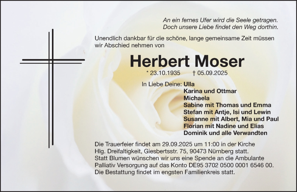 Hier finden Sie alle Traueranzeigen aus der Zeitung, die bisher für Herbert Moser erschienen sind. Weitere Traueranzeigen, die in der Zeitung erscheinen, werden hier ebenfalls aufgelistet