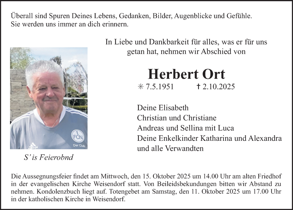 Hier finden Sie alle Traueranzeigen aus der Zeitung, die bisher für Herbert Ort erschienen sind. Weitere Traueranzeigen, die in der Zeitung erscheinen, werden hier ebenfalls aufgelistet