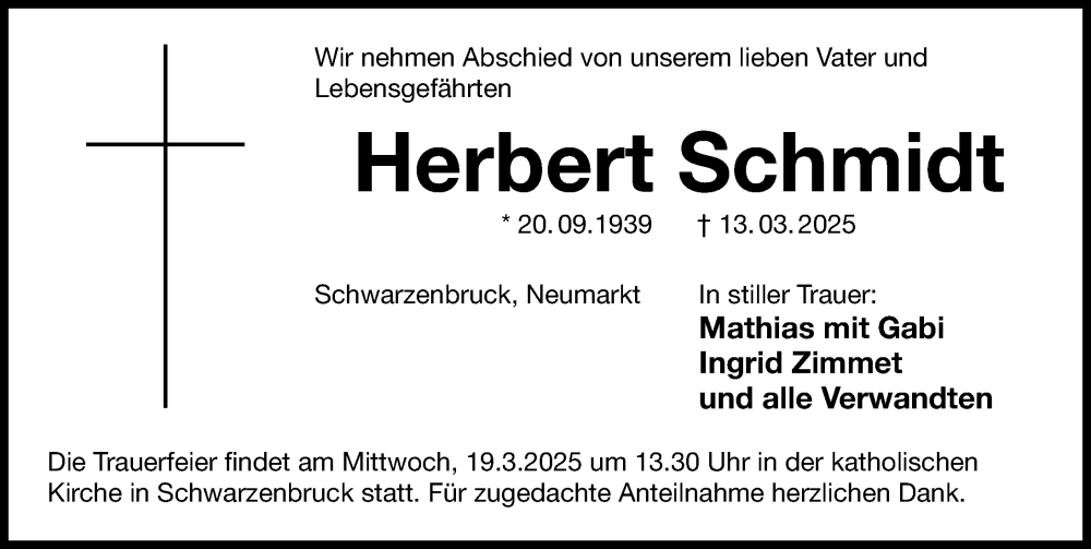 Hier finden Sie alle Traueranzeigen aus der Zeitung, die bisher für Herbert Schmidt erschienen sind. Weitere Traueranzeigen, die in der Zeitung erscheinen, werden hier ebenfalls aufgelistet