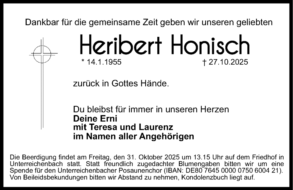 Hier finden Sie alle Traueranzeigen aus der Zeitung, die bisher für Heribert Honisch erschienen sind. Weitere Traueranzeigen, die in der Zeitung erscheinen, werden hier ebenfalls aufgelistet