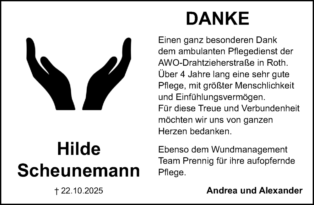 Hier finden Sie alle Traueranzeigen aus der Zeitung, die bisher für Hilde Scheunemann erschienen sind. Weitere Traueranzeigen, die in der Zeitung erscheinen, werden hier ebenfalls aufgelistet