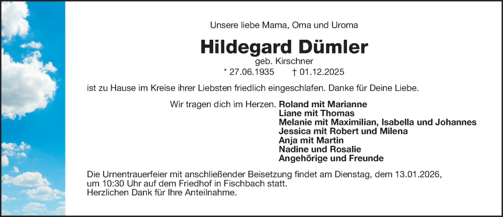 Hier finden Sie alle Traueranzeigen aus der Zeitung, die bisher für Hildegard Dümler erschienen sind. Weitere Traueranzeigen, die in der Zeitung erscheinen, werden hier ebenfalls aufgelistet