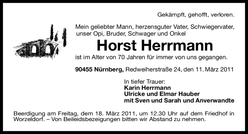 Hier finden Sie alle Traueranzeigen aus der Zeitung, die bisher für Horst Herrmann erschienen sind. Weitere Traueranzeigen, die in der Zeitung erscheinen, werden hier ebenfalls aufgelistet