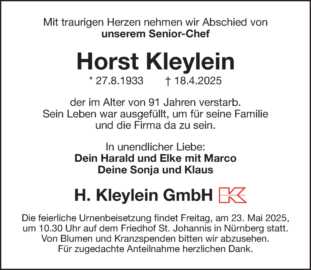Hier finden Sie alle Traueranzeigen aus der Zeitung, die bisher für Horst Kleylein erschienen sind. Weitere Traueranzeigen, die in der Zeitung erscheinen, werden hier ebenfalls aufgelistet