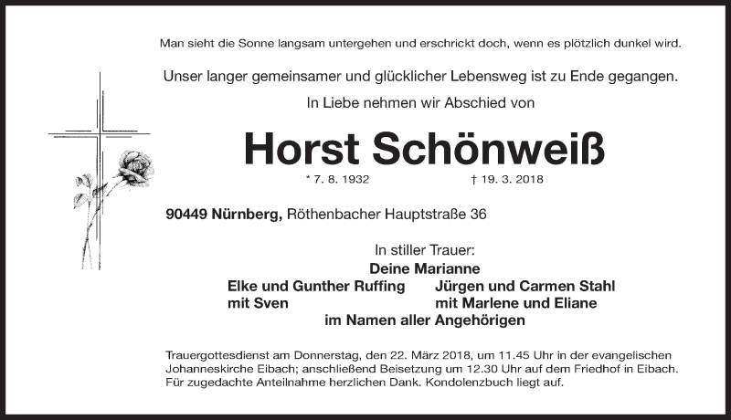 Hier finden Sie alle Traueranzeigen aus der Zeitung, die bisher für Horst Schönweiß erschienen sind. Weitere Traueranzeigen, die in der Zeitung erscheinen, werden hier ebenfalls aufgelistet