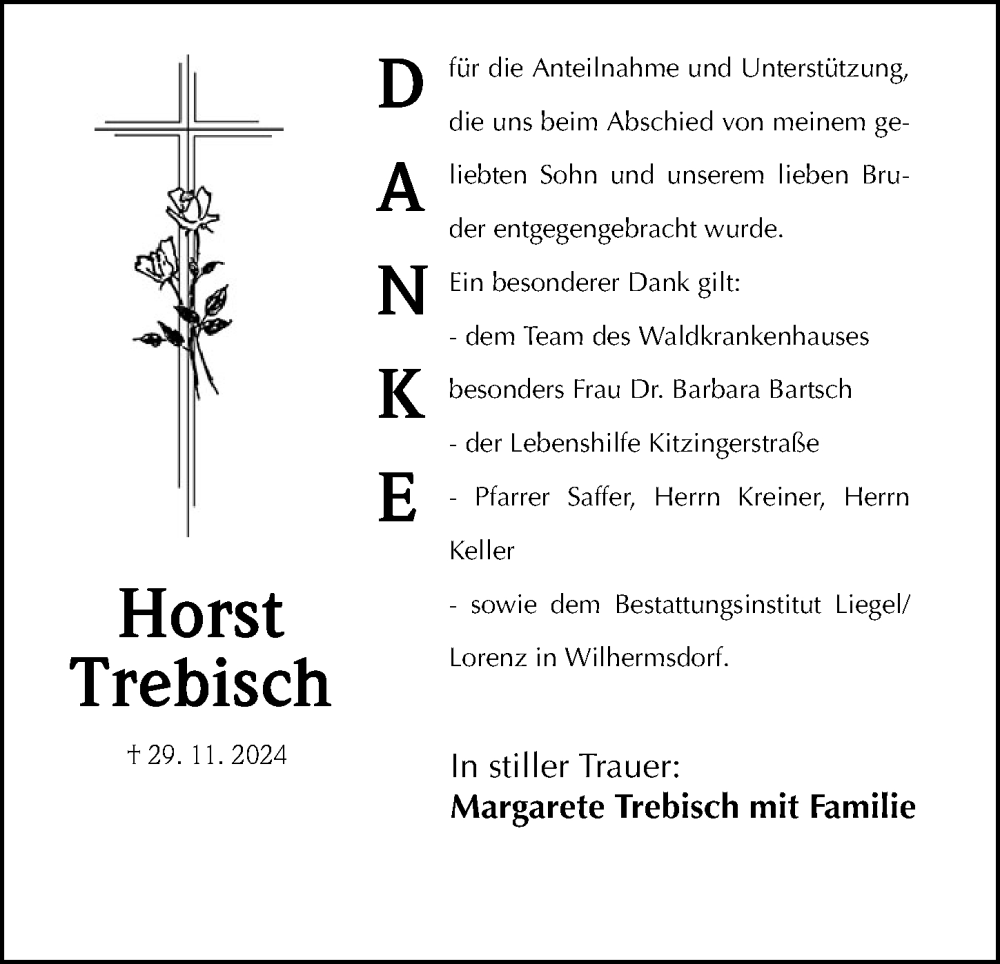 Hier finden Sie alle Traueranzeigen aus der Zeitung, die bisher für Horst Trebisch erschienen sind. Weitere Traueranzeigen, die in der Zeitung erscheinen, werden hier ebenfalls aufgelistet