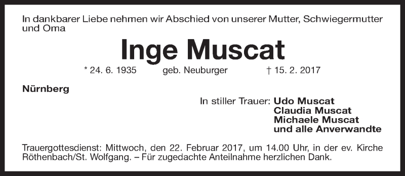 Hier finden Sie alle Traueranzeigen aus der Zeitung, die bisher für Inge Muscat erschienen sind. Weitere Traueranzeigen, die in der Zeitung erscheinen, werden hier ebenfalls aufgelistet